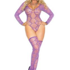Long Sleeve Teddy With Thigh High Stockings Purple Queen