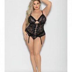 Flame Fetish Soulmate Lace Up Bustier & Wide Band Thong Black 1x/2x