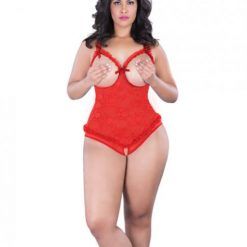 Lace Open Cup Crotchless Teddy Red One Size Queen