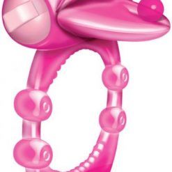 Pierced Tongue Vibrating Silicone Cock Ring Waterproof Magenta