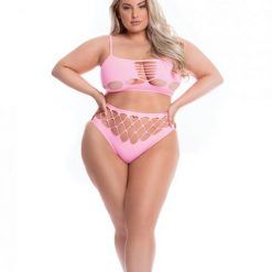 Pink Lipstick On Level High Criss Cross Bodystocking Black O/s