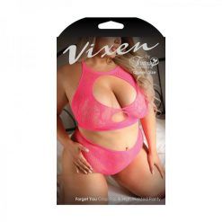 Fantasy Lingerie Vixen Forget You Seamless Lace Crop Top & High Waisted Panty Pink Queen Size
