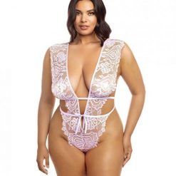Imani Eyelash Lace Soft Cup High Leg Teddy Pink Tulle 1x/2x