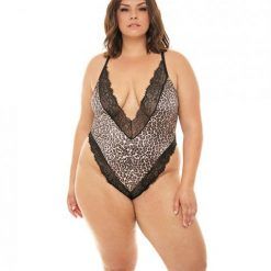 Jolene Satin Teddy W/plunging Neckline Leopard/black 1x/2x