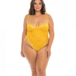Kinsley Rigid Eyelash Lace & Mesh Padded Cup Bustier & Panty Black Xl