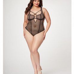 Fishnet Strappy High Cut Leg Teddy Black 1x/2x