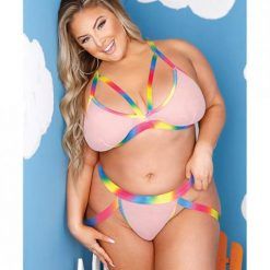 Vibes Make It Rain Caged Bralette & Panty W/booty Rainbow Qn