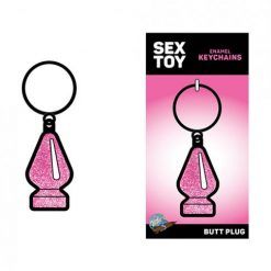 Wood Rocket Butt Plug Keychain – Pink Glitter