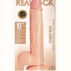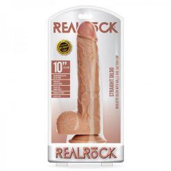 Realrock Straight Realistic Dildo With Balls And Suction Cup 10 In. Tan