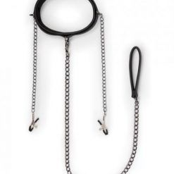 Easy Toys Lead & Nipple Clamps, Collar Restraint Set Black