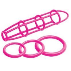 Neon Silicone Cage And Love Ring Set Pink