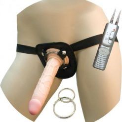 All American Whoppers 8 inches Vibrating Dong & Universal Harness Beige