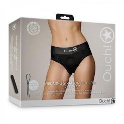 Shots Ouch! Vibrating Strap-on High-cut Brief Black Xs/s