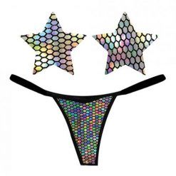 Neva Nude Naughty Knix Mirrored Mayhem Holographic G-string & Pasties – Black O/s