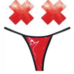 Neva Nude Naughty Knix Vixen Wet Vinyl G-string & Pasties – Red O/s