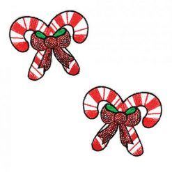 Neva Nude Sequin Candy Cane Pasties – Red/white O/s