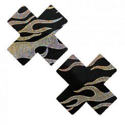 Neva Nude Robo Meltdown Holographic X Factor Pasties – Black/silver O/s