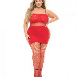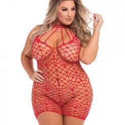 Pink Lipstick Seamless Halter Net Dress Red 1X/2X