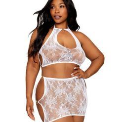Seamless Lace Bralette & Mini Skirt Set White Q/s