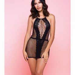 Neon Honeycomb Chemise W/strappy Back & G-string Neon Pink Md