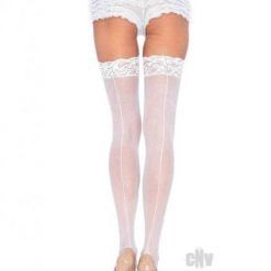 Sheer Stay Up Silicone Lace Top Thigh High Stocking White Os/xl