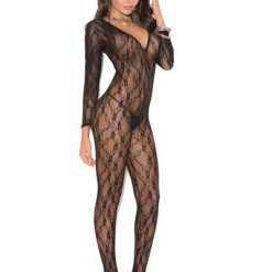 Deep Plunge Halter Seamless Bodystocking Gown W/lace And Fishnet – White/lavender O/s