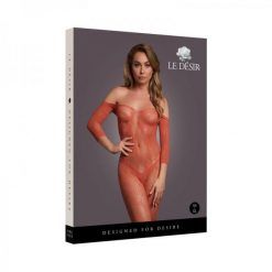 Le Desir Lace Long-sleeved Bodystocking Sunset Glow Queen Size