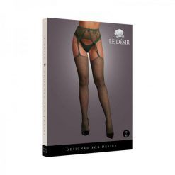 Le Desir Fishnet And Lace Garterbelt Stockings Midnight Green O/s