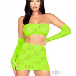 Cat Girl Lace Gartered Bodysuit W/lace Up Back & Head Piece Black L/xl