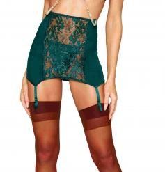 High Waist Lace Garter Panty, Halter Top W/stockings Ultra Marine Green O/s
