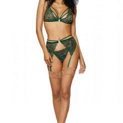 Metallic Stretch Lace 3pc Set Evergreen O/s