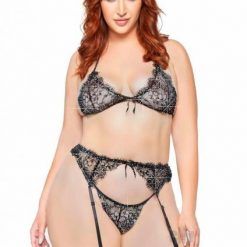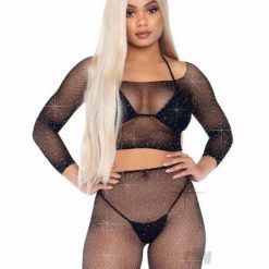 Rhinestone Fishnet Keyhole 3pc Os Blk