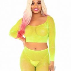 Rhinestone Fishnet Top/shorts Os 2pc Ylw