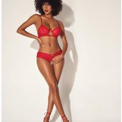 Shadow Stripe Underwire Top W/heart Detail & Crotchless Bottom Red L/xl