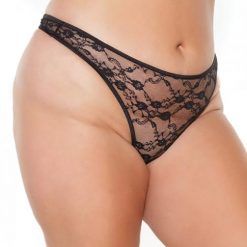 Stretch Lace & Strappy Elastic Open Front Thong Panty Black L/xl