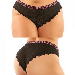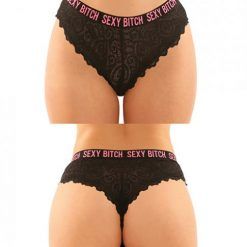 Vibes Buddy Sexy Bitch Lace Panty & Micro Thong Black/pnk L/xl