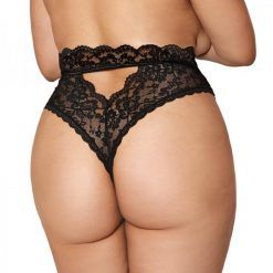 Dreamgirl High-waist Scallop Lace Panty With Keyhole Back Black 1xl