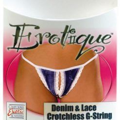 Erotique Denim and Lace Crotchless G String Blue