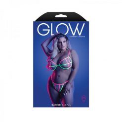 Fantasy Lingerie Glow Head Rush Uv Reactive Contrast Binding Bra & Adjustable G-string Queen Size