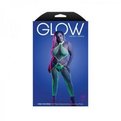 Fantasy Lingerie Glow High Voltage Uv Reactive High Neck Bodystocking & G-string Panty O/s