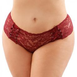 Magnolia Crotchless Lace Boyshort With Lace-up Panel Details Garnet L/xl