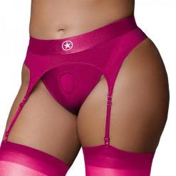 Ouch! Vibrating Strap-on Thong With Adjustable Garters Pink Xl/xxl