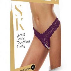 Sk Lace And Pearl Crotchless Thong Pur Q