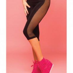 Pink Lipstick Sweat Side Net Stretch Crop Pant For Support & Compression Black S/m