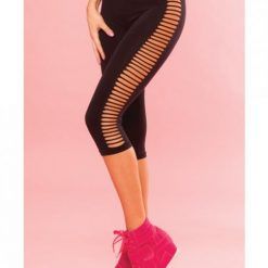 Pink Lipstick Sweat Side Slash Stretch Crop Pant For Support & Compression Black M/l