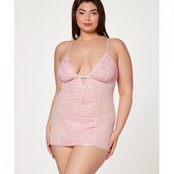 Floral Mesh Chemise & G-string Pink 1x/2x