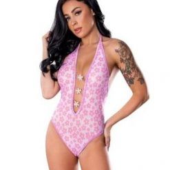 Cut Out Lace Garter Romper Snap Crotch Rose Pinot O/S