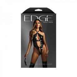 Fantasy Lingerie Edge Croc Embossed Wetlook Crotchless Teddy & Clip-on Mini Flogger Queen Size