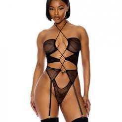 Pull My Strings Sheer Mesh Halterneck Teddy – Black Md