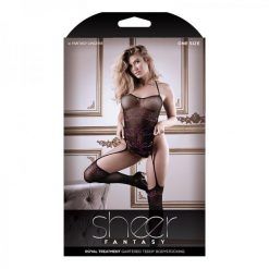 Sheer Royal Treatment Gartered Rhinestone Detail Teddy Bodystocking Black O/s